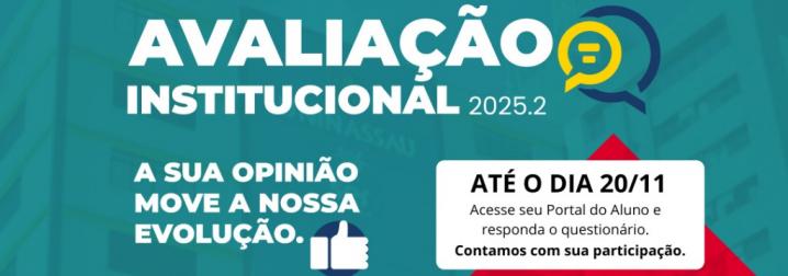 A Avaliação Institucional foi prorrogada até o dia 10/06. Ela está disponível no Portal do Aluno e pode ser respondida de forma rápida e prática.